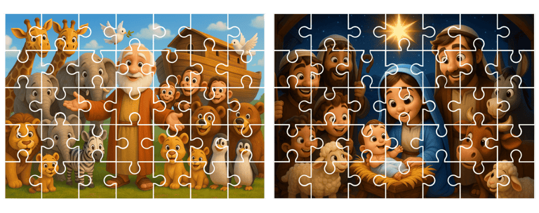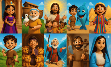 Um jogo divertido e educativo que ajuda as crianças a memorizar personagens e histórias da Bíblia enquanto se divertem!